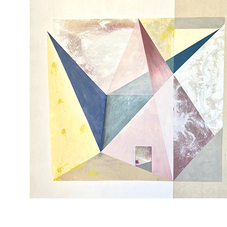 Cada obra es un mapa emocional. Superpongo capas, texturas y líneas que funcionan como huellas de mis viajes